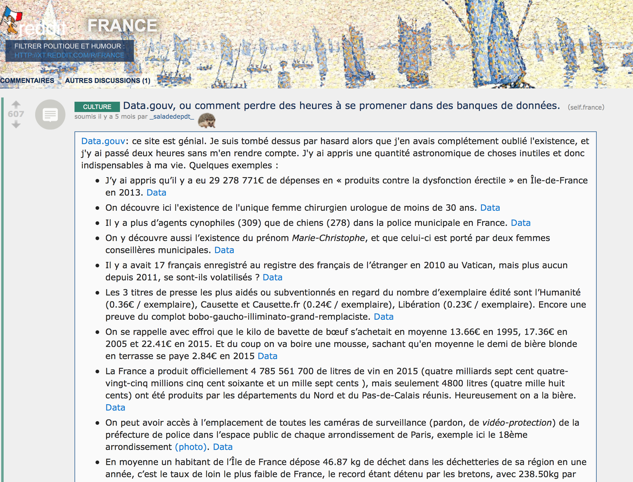 class: center, middle, inverse, title-slide # Data activism ## Comment faire campagne avec des données ? ### Samuel Goëta ### Greenpeace France, 11 juillet 2017 --- class: center, middle Retrouvez les matériaux sur https://github.com/datactivist/greenpeace-formation/ Ces slides en ligne : http://datactivi.st/greenpeace-formation/ Les productions de Datactivist sont librement réutilisables selon les termes de la licence [Creative Commons 4.0 BY-SA](https://creativecommons.org/licenses/by-sa/4.0/legalcode.fr). <img src="./img/Logo_DATACTIVIST_TW.png" height="150px" /> --- ## Open data : Un trésor méconnu et sous exploité [](https://www.reddit.com/r/france/comments/5ing61/datagouv_ou_comment_perdre_des_heures_%C3%A0_se/) ??? Vous êtes probablement déjà allé sur un portail open data et peut etre que vous avez été déçu par les données que vous y avez trouvé. J'ai été très surpris par ce message qui est resté en une de Reddit France où l'auteur montre des faits intriguants à partir de data.gouv.fr --> vous montrer que l'open data peut révéler de nouvelles choses ou vous permettre les choses sous un autre angle --- # Mobiliser avec des données ###Exemple : Mejora tu escuela (Mexique) [](http://www.mejoratuescuela.org/escuelas/index/13DES0047O) .footnote[appuyer sur la touche `p` pour obtenir des détails sur le projet] ??? vu dans la[ 4ème édition du rapport annuel d'Open Data Barometer](http://opendatabarometer.org/doc/4thEdition/ODB-4thEdition-GlobalReport-FR.pdf): L’initiative pour l’éducation Mejora tu Escuela (« Améliore ton école ») est une plateforme en ligne qui donne des renseignements aux citoyens sur les résultats des écoles. Elle a comme objectif principal d’aider les parents. Elle permet aux utilisateurs de comparer les données de 163 785 bases différentes pour aider à la prise de décision en matière d’éducation et améliorer l’éducation des enfants. Le pouvoir décisionnel des parents a été renforcé et l’initiative a également permis d’exercer un contrôle plus efficace et de réduire la corruption dans le système éducatif mexicain. Outre les parents, d’autres acteurs importants, dont les enseignants, les décideurs politiques et les organisations de la société civile utilisent ces données pour analyser et évaluer les performances des élèves actuellement scolarisés, afin de renforcer, voire de réformer, le système scolaire. Le Mexique a un taux d’obtention du diplôme de fin d’études secondaires plus bas que la moyenne des pays de l’OCDE. Améliorer ce résultat est donc un objectif prioritaire et un outil comme Mejora tu Escuela peut contribuer à y parvenir. --- # Mobiliser avec des données ###Exemple : Paysages de France .reduite2.center[] .footnote[`p` pour obtenir des détails] ??? Voir la [présentation à l'OGP](http://pdfext.github.io/OGP2016/PitchCorner_OpenData_Thursday_December_8th__9_30_AM.pdf) Tout ceci se passe fin 2015 et début 2016. L'association 'Paysages de France' qui défend depuis plus de 25 ans le paysage contre toutes formes de pollution visuelle et notamment celle qui est due aux panneaux publicitaires, est informée fin août 2015 d'un projet de décret gouvernemental sur l'affichage publicitaire. Après avoir compris la portée de ce projet de décret, préparé sans nul doute par les lobbies publicitaires qui régulièrement essayent de faire évoluer la réglementation en leur faveur, l'association engage toutes ses forces pour s'y opposer, et commence alors une course de vitesse et une lutte de plus de 6 mois. Il faut évaluer, pour chacun des territoires français, la portée exacte de ce projet de décret, et il faut ensuite faire connaître au plus grand nombre cette étude d'impact. Que chacun puisse juger ! Pour ceci les données ouvertes sur les unités urbaines, les communes, sur la population, sur les Parcs Naturels Régionaux s'avèrent indispensables, la réglementation se basant sur ces données pour établir des seuils d'autorisation ou d'interdiction. Ces données récupérées sur la plateforme OpenData du gouvernement servent à établir une cartographie complète du projet de décret, en ligne et interactive, extrêmement éloquente : les communes ou les PNR qui seraient concernés apparaissent alors très clairement. Les effets de ce projet sautent alors aux yeux de tous, et leurs aspects très néfastes ! Cette cartographie est reprise progressivement par un grand nombre de médias nationaux et provinciaux, jusqu'aux JT de France3 et au JT du 20h de France2, et a ainsi contribué de manière décisive à la prise de conscience du public. Cette cartographie s'est rajoutée à toute une panoplie d'actions de l'association Paysages de France. La transparence et l'évaluation objective manquaient vraiment dans ce projet gouvernemental. Devant sa réalité dévoilée aux yeux de tous, le gouvernement a dû finalement renoncer à tous les articles de ce projet de décret (sauf un article relatif à la publicité autour des grands stades dans le cadre de l'Euro 2016, article qu'il faut continuer de dénoncer) et donc notamment renoncer complètement à étendre les zones où l’installation de panneaux publicitaires au sol de grand format aurait été autorisée. --- # Mobiliser avec des données ###Exemple : Transparency France - [Visualiser la corruption](https://www.visualiserlacorruption.fr/home) .reduite2.center[] ??? Lisez cet article dans [Le Monde](http://abonnes.lemonde.fr/chronique-des-communs/article/2017/02/11/une-carte-collaborative-de-la-corruption-en-france_5078252_5049504.html) qui présente le travail des bénévoles derrière ce projet. --- #Objectif de la formation 📣 Exploiter les données ouvertes pour faire campagne et mobiliser .pull-left[ **Session 1 : Ouvrir des données** <br/><br/><br/> ✅ Faire la différence entre open data et big data <br/><br/><br/> ✅ Connaitre les origines et les grands principes de l'open data <br/><br/><b