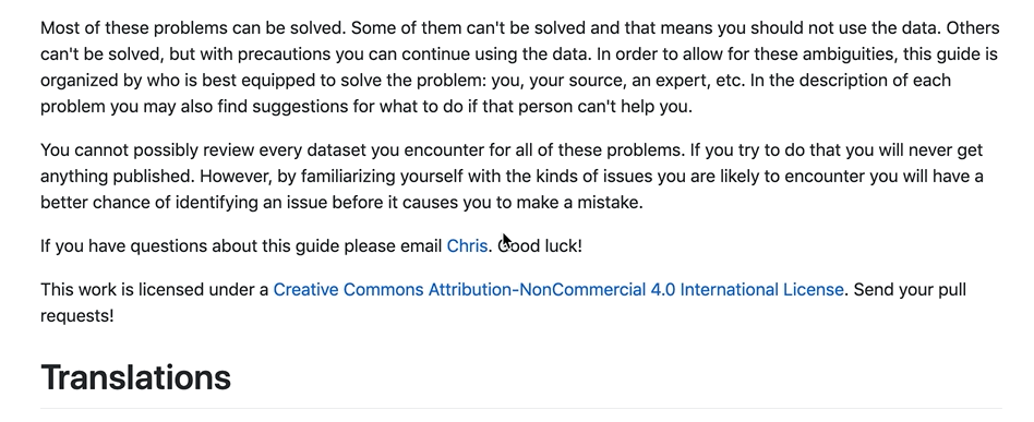 class: center, middle, inverse, title-slide # The Data Pipeline ## the pitfalls of reusing open datasets ### Joël Gombin, Datactivist ### Sciences Po, 2020-10-08 --- class: center, middle #### These slides online: http://datactivist.coop/sciencespo_odur/2020/3/ Source: https://github.com/datactivist/sciencespo_odur/2020/3/ Datactivist's work is freely reusable licenced under [Creative Commons 4.0 BY-SA](https://creativecommons.org/licenses/by-sa/4.0/legalcode.fr). <BR> <BR>  --- ### The Data Pipeline .pull-left[ .reduite[  ] ] .pull-right[ We will follow the [Data Pipeline](http://schoolofdata.org/methodology) methodology developed by the [School of Data](https://schoolofdata.org/). * A generic methodology for the discovery and use of open data * 7 steps which, depending on the projects, are more or less important. ] --- ### Define .pull-left[ .reduite[  ] ] .pull-right[ ###### Define your problem precisely ###### What are you trying to understand? ##### What data would you need? ] --- ## To define is to find an angle about your topic  .footnote[[](https://fr.okfn.org/2014/07/03/a-la-conquete-des-donnees-sur-la-pollution-de-lair/)] --- ### Find .pull-left[ .reduite[] ] .pull-right[ ##### Use special search operators ##### Search on open data portals ##### Use facets to find the right data ##### Extract data from OpenStreetMap ##### Rely on [data curation resources] (https://teamopendata.org/t/curation-de-donnees-data-is-plural/734) ] --- ## Use special search operators Exemple with a "site:education.gouv.fr filetype:xlsx" :  --- ### Use facets to find the right data .pull-left[  ] .pull-right[ Facets are filters in metadata. For example, they allow you to select only a certain producer. This can save a lot of time in a data search. ] --- ### Use facets to find the right data  .pull-left[ Without a facet filter, at the schools' request, we have surprising results on the first page like these FEMIS data. ] .pull-right[ By keeping only "Education nationale" in the organization facet, we ensure that we find national data. ] --- ### Using Google Dataset Search Google has been offering this[search engine](https://toolbox.google.com/datasetsearch) for some time now, which aggregates a large number of open data portals. The results are uneven but the engine is still new... [](https://toolbox.google.com/datasetsearch) --- ### Search the [OpenDataSoft data network](https://data.opendatasoft.com) OpenDataSoft references all data sets published on all its portals. Among them, the Public portal refers to data sets that cannot be found elsewhere, such as the [location of speed radars](https://data.opendatasoft.com/explore/dataset/radars%40public/table/).  --- ### Find the right tag on OSM The "[Map Features](https://wiki.openstreetmap.org/wiki/Map_Features)" page on the OSM wiki lists all the tags used in the database. [](https://wiki.openstreetmap.org/wiki/FR:%C3%89l%C3%A9ments_cartographiques) .footnote[More info: https://datactivist.coop/atelier-osm/] --- ### Use [data curation resources](https://teamopendata.org/t/curation-de-donnees-data-is-plural/734) We have listed on [TeamOpenData](https://teamopendata.org/t/curation-de-donnees-data-is-plural/734) the best data curation resources. A search will help you find international data that you would not otherwise find. For example, the excellent [Data Is Plural Newsletter](https://tinyletter.com/data-is-plural/) provides a weekly presentation of the best datasets that are archived in a [spreadsheet](https://docs.google.com/spreadsheets/d/1wZhPLMCHKJvwOkP4juclhjFgqIY8fQFMemwKL2c64vk/edit#gid=0) [](https://docs.google.com/spreadsheets/d/1wZhPLMCHKJvwOkP4juclhjFgqIY8fQFMemwKL2c64vk/edit#gid=0) --- ### Get .pull-left[ .reduite[  ] ] .pull-right[ - ###### Direct download - ##### API or web service - ##### Data scrapping - ###### Copy / paste - ##### Extraction (OpenStreetMap) ] --- ### Data scrapping: some tools [import.io](https://import.io) is an excellent tool that makes it much easier to extract data from a website. The tool automatically detects the structure of the data on the site.  .footnote[Loïc Haÿ has developed a [tutorial](https://www.dropbox.com/s/yarrneyseghd7d6/05-%20Extraire%20des%20donn%C3%A9es%20%C3%A0%20partir%20de%20pages%20web.pdf?dl=0) to use import.io.] --- ### Data scrapping: some tools The [WebScraper](https://webscraper.io/) extension for Chrome allows you to make complexe scrapping processes.  --- ### Extract data from OSM [Overpass-Turbo](overpass-turbo.eu) allows you to extract specific elements from the OpenStreetMap database. Example here with schools in the Yonne département:  .footnote[More info: https://datactivist.coop/atelier-osm/] --- ## Verify .pull-left[ .reduite[  ]] .pull-right[ - ##### Common sense - ##### Ask the source - ##### Rely on communities of experts - ##### Statistics ] --- ### Rely on the comments in data.gouv.fr data.gouv.fr allows users to discuss data, this will help you to detect problems with the data. [](https://www.data.gouv.fr/fr/datasets/donnees-du-repertoire-national-des-elus/) --- ### WTFCSV to perform a quick data check [WTFCSV](https://www.databasic.io/en/wtfcsv/) is a data mediation tool that provides an overview of your CSV files. [](https://www.databasic.io/en/wtfcsv/results/5b73338c9dfb0a00e15f07ff#tooltip) --- ### Clean .pull-left[ .reduite[] ] .pull-right[ - #### Data cleaning - ##### Edition - #### Consolidation - ###### Frequent errors - Format for dates - Duplicates - Spelling errors ] --- ### OpenRefine for cleaning data [OpenRefine](http://openrefine.org/) is a powerful tool for exploring, transforming and reconciling data. <iframe width="560" height="315" src="https://www.youtube.com/embed/cO8NVCs_Ba0" frameborder="0" allow="accelerometer; autoplay; encrypted-media; gyroscope; picture-in-picture" allowfullscreen></iframe> .footnote[Mathieu Saby has published a[complete tutorial] (http://opendata.maregionsud.fr/fileadmin/user_upload/tx_ausynews/ODL/ODL_OpenRefine_Marseille_201